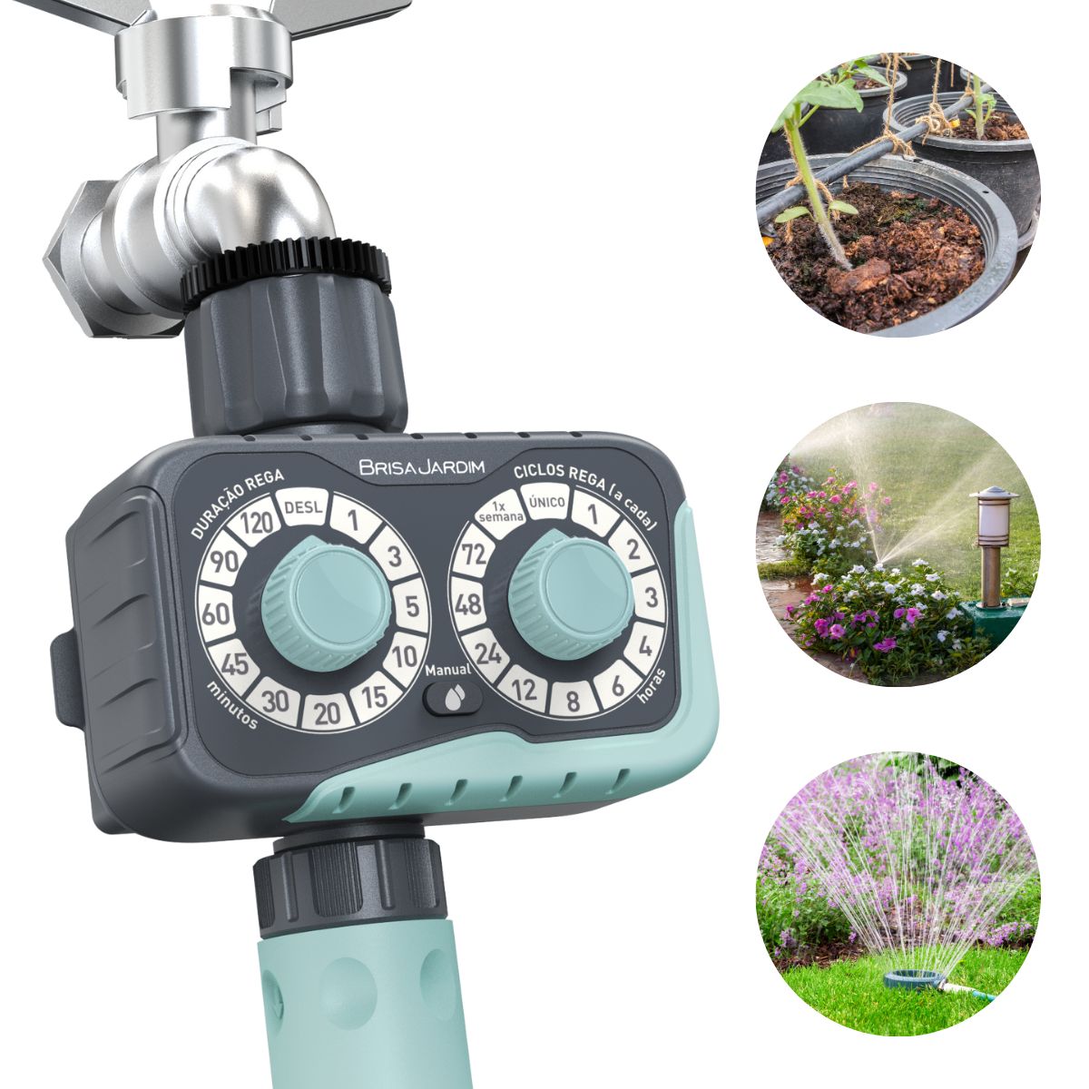 Quando conectado à torneira, realiza a abertura e fechamento automático do fluxo de água do sistema de irrigação conforme programações pré-definidas. Ideal para uso conjunto com sprinklers, irrigadores de impacto, aspersores, irrigadores rotativos, nebulizadores e gotejadores.